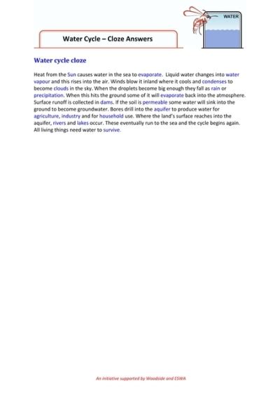 Read Water Cycle Cloze Answers Reader